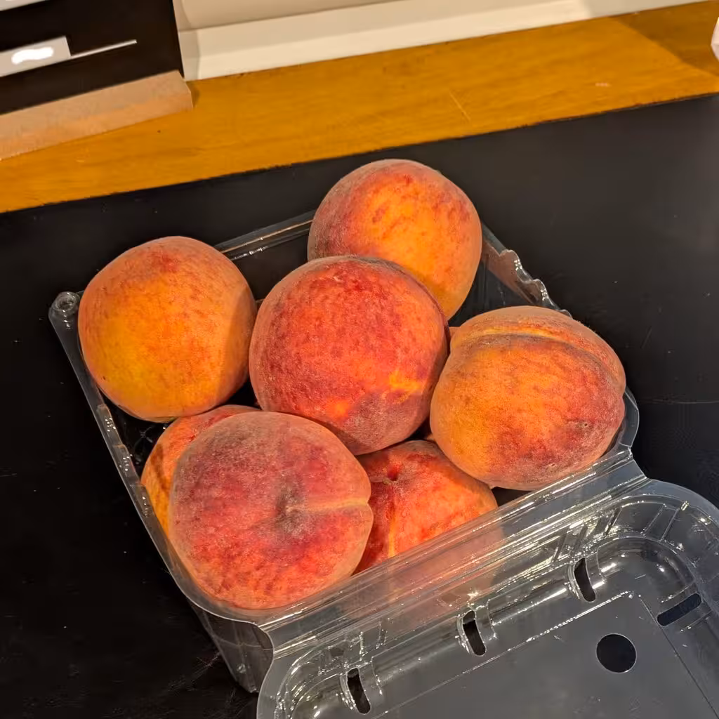 - 3L of peaches from the Ottawa grocery store. The problem is that they are all unripe, and then they are all ripe at once. They were good when they were ripe, but then it’s a lot.