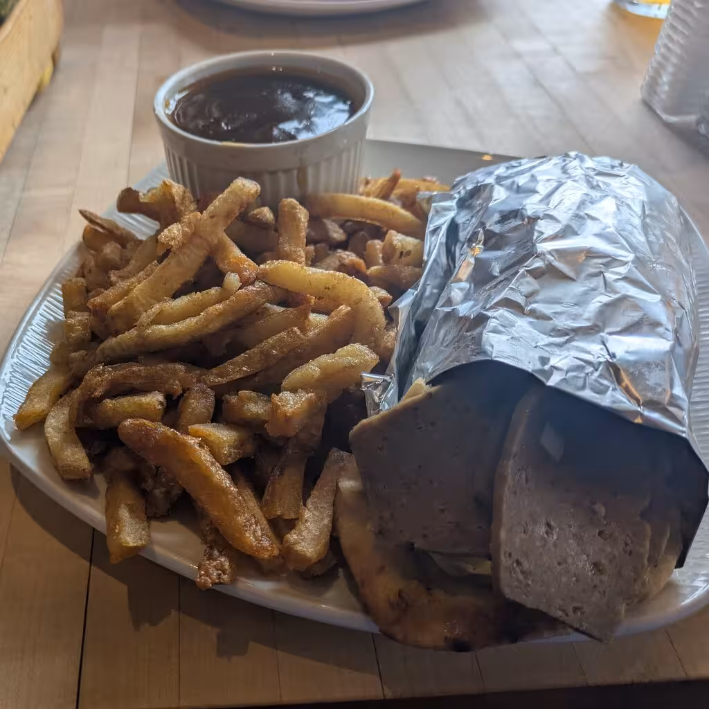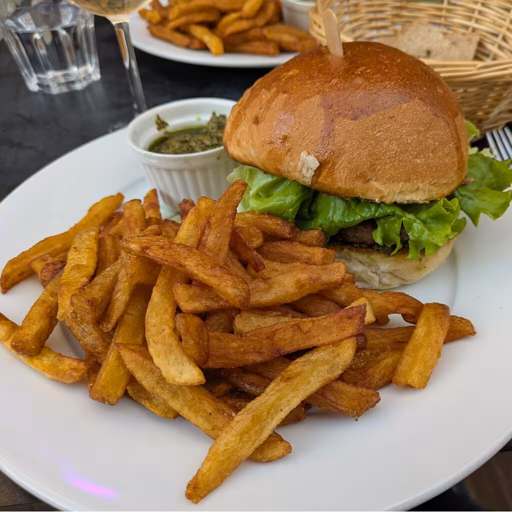 - La maison de l’entrecôte: there is a 6-restaurant chain of this name which the Grenoble location would seem to belong to, but Grenoble is not one of the sites, despite having the chain-wide tagline “et sa fameuse sauce”. Weird. Anyway, lots of meat. I had a good burger, and the sauce was good too.