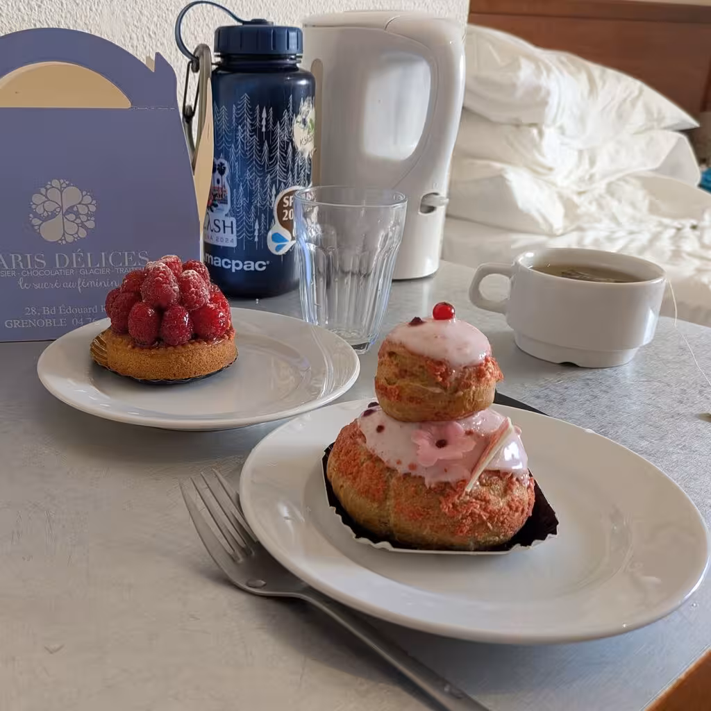 - Paris Delices which is not a chain and located in Grenoble rather than Paris, despite the name. Neighbourhood patisserie near where we were stayed. Correct croissant. I think MP also got the religieuse and raspberry tart from there.