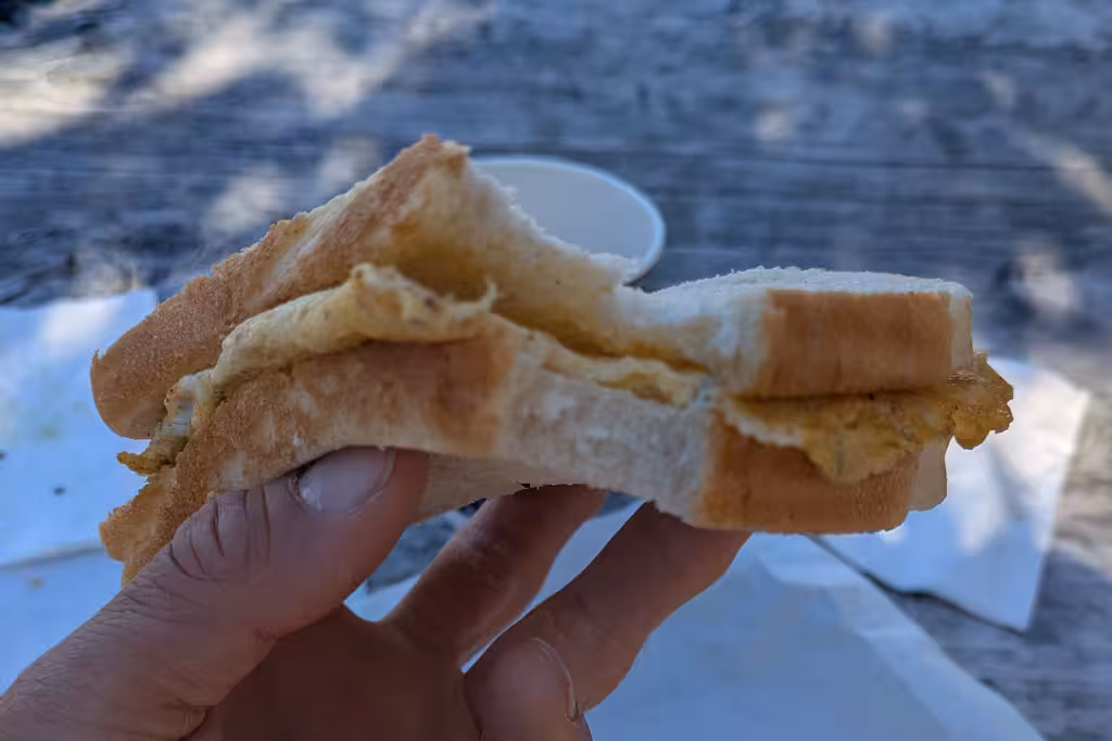Mostly I had struck out with cabins at holiday parks, but I managed to get one at the Lake Ruataniwha Holiday Park. We had 3 hours of driving after our hike, got to the holiday park, went out for burgers, and then drove the rest of the way to Christchurch the next day. But first, we stopped at the Foodelicious food truck. MP loved her “the works” bacon butty. I had whitebait. People love whitebait, but it doesn’t really taste like much, honestly.